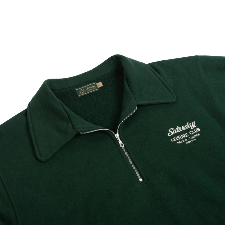 [SATURDAY LEISURE CLUB] Saturday Leisure Club Logo Leisure Half Zip-Up Sweatshirt(Unisex) - Green