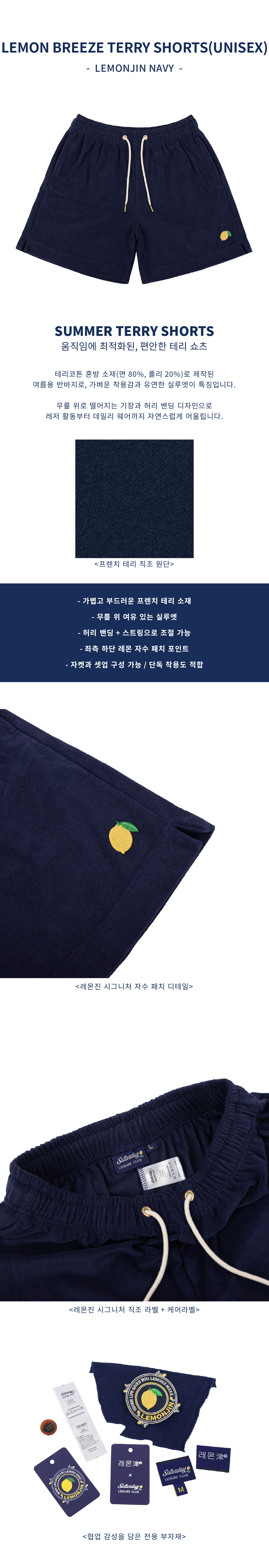 *출시 기념 할인* [순하리 레몬진 x SATURDAY LEISURE CLUB] Lemon Breeze Terry Shorts(Unisex) - Lemonjin Navy