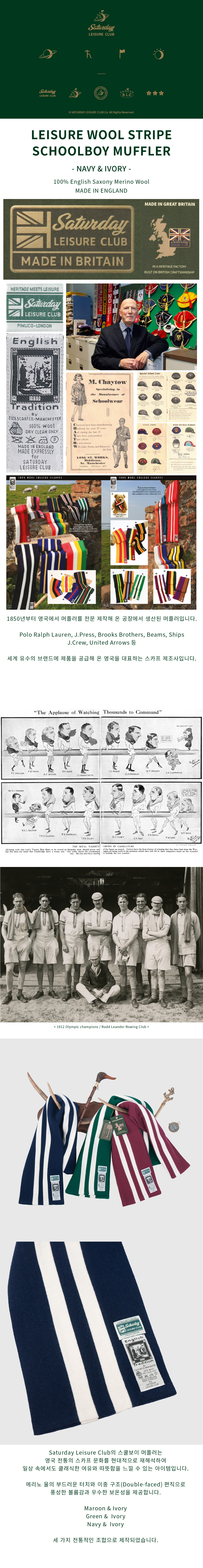 [SATURDAY LEISURE CLUB] Leisure Wool Stripe Schoolboy Muffler - Navy & Ivory