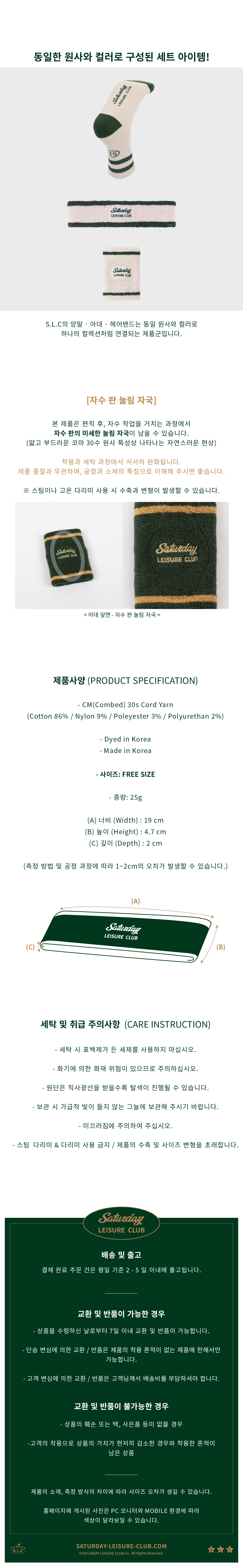 [SATURDAY LEISURE CLUB] Leisure Headband - Ivory & British Racing Green